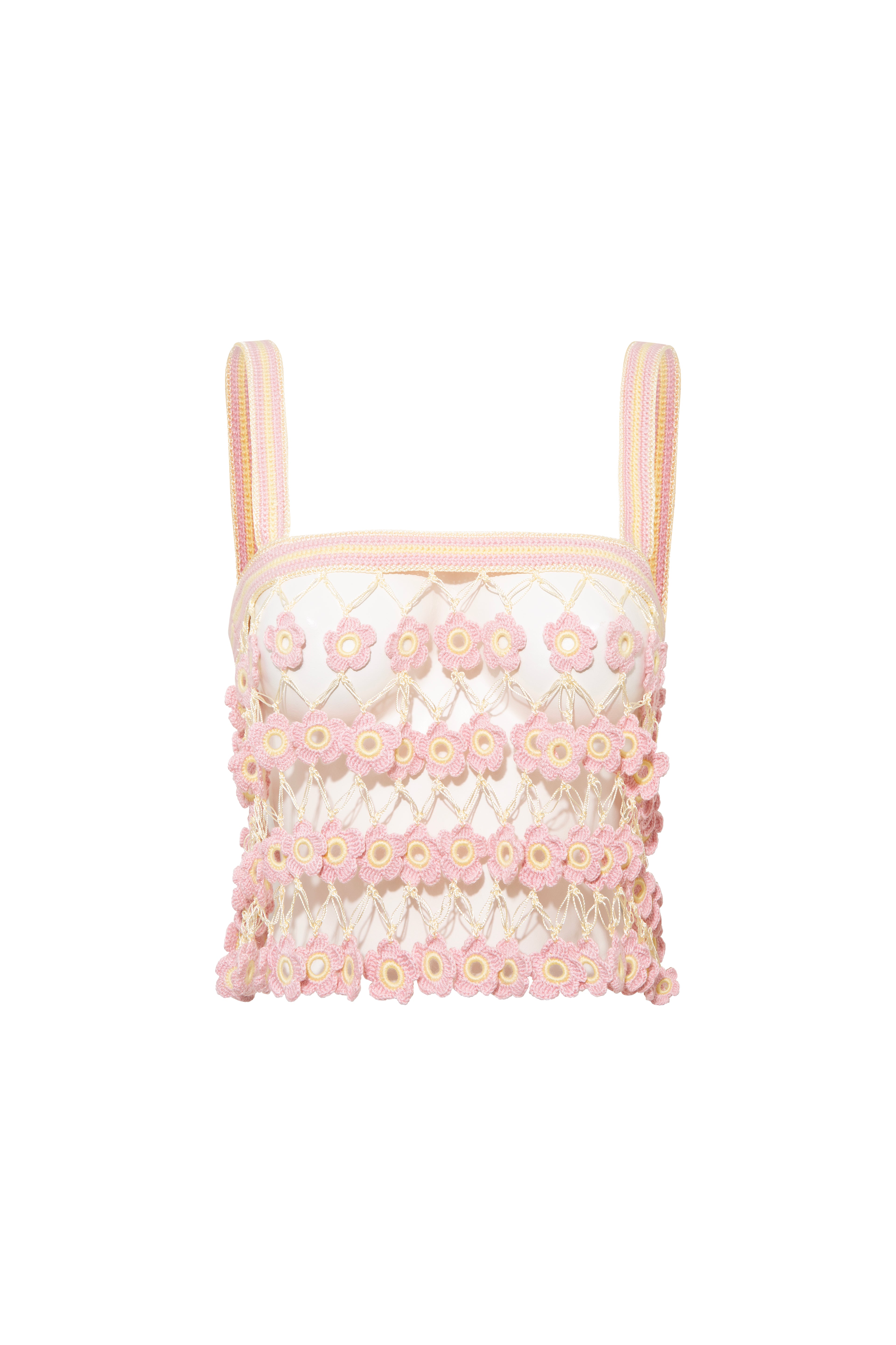 Our signature crochet square-neck camisole is a delicate statement of artisanal craftsmanship. Lovingly handcrafted by skilled, fairly compensated artisans, this piece features intricate floral motif detailing that bring timeless charm to its design. Light and breathable, it offers effortless versatility—perfect for pairing with a variety of bottoms or worn alone for an elegant summer look.